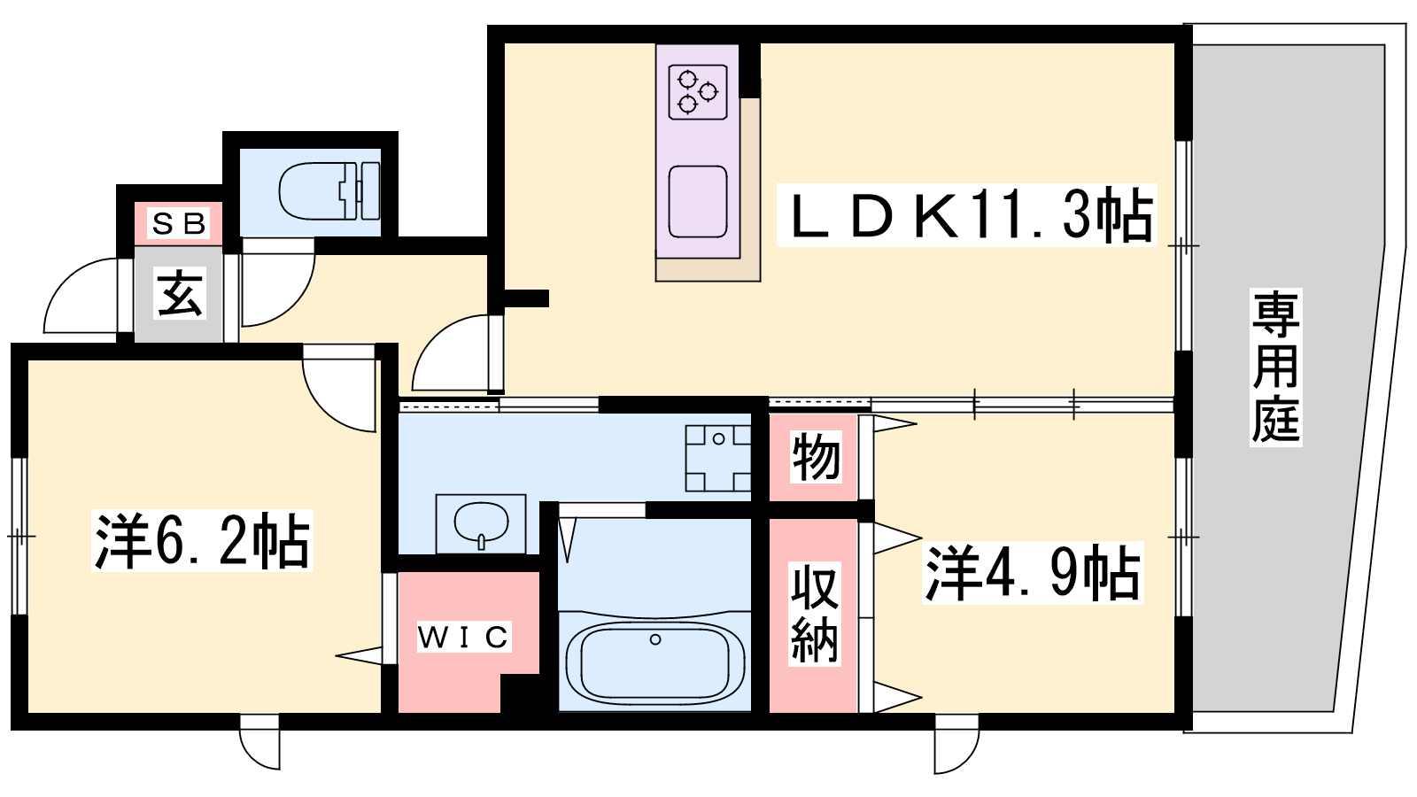 - LDK11.3帖、洋室6.2帖、洋室4.9帖