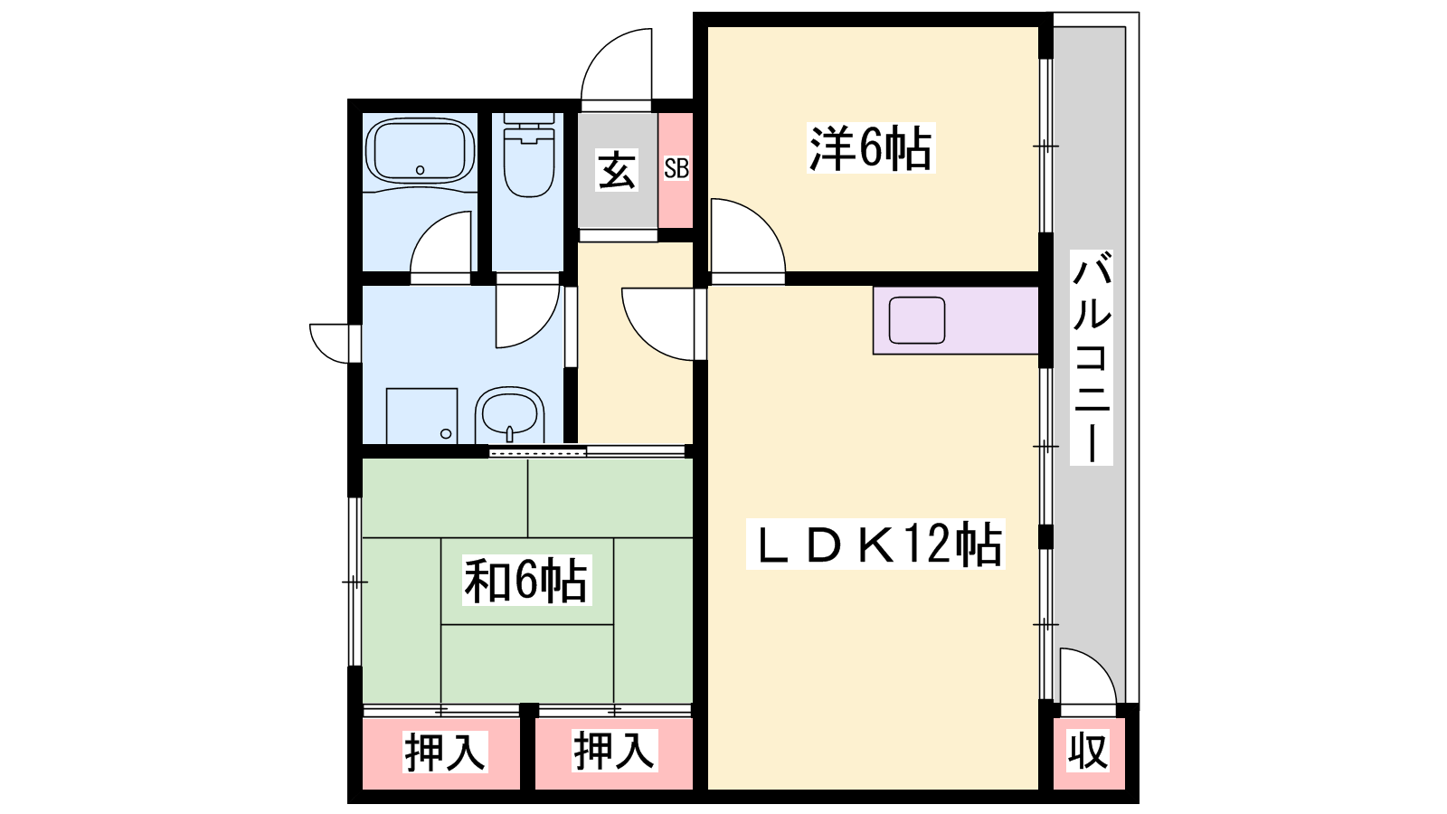 - LDK12帖、洋室6帖、和室6帖