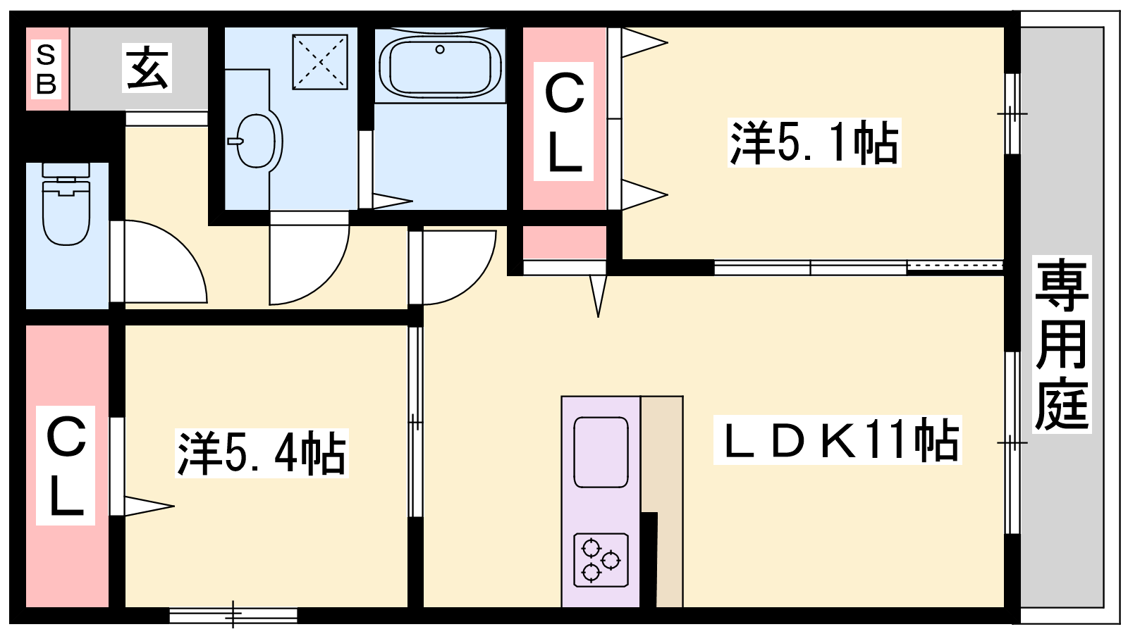 - LDK11帖、洋室5.4帖、洋室5.1帖