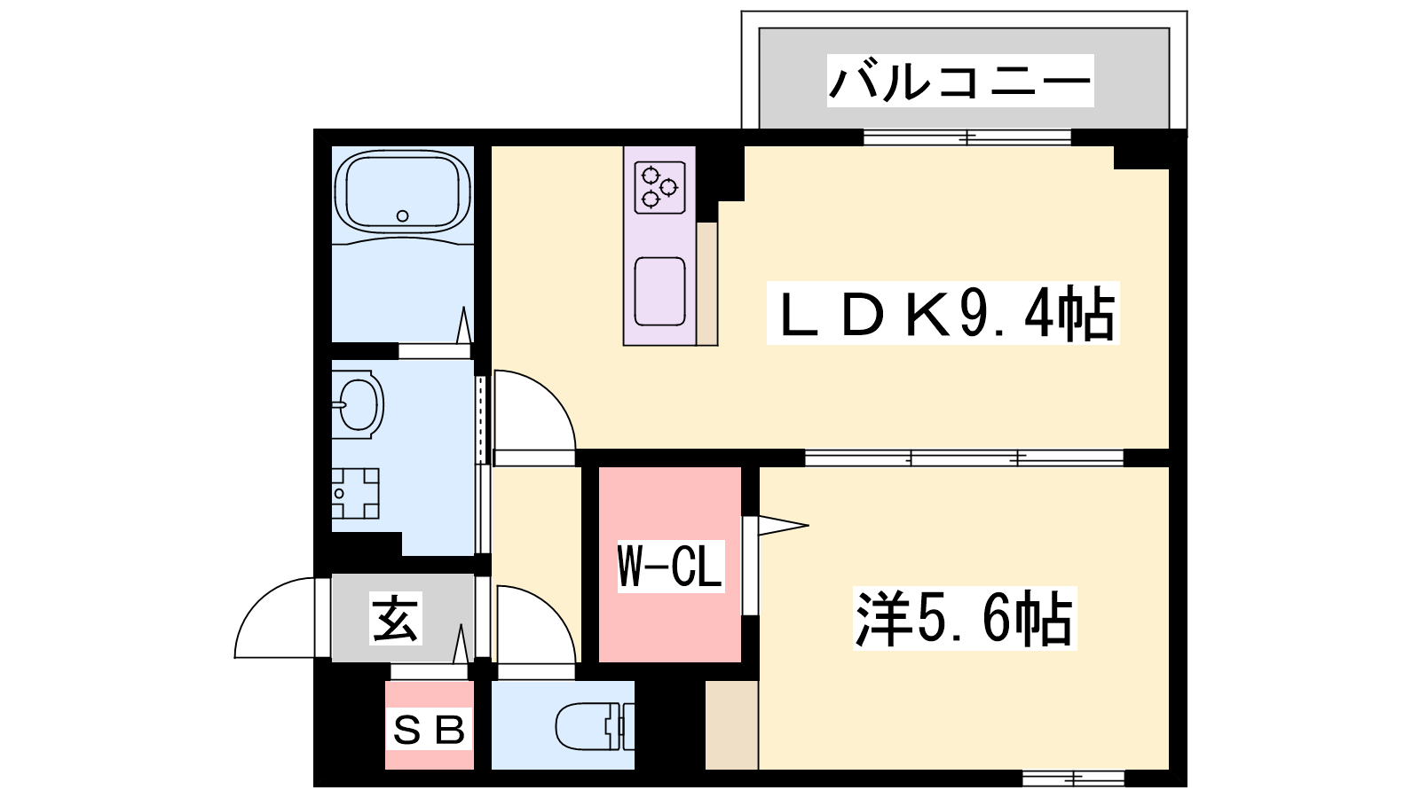 - LDK9.4帖、洋室5.6帖