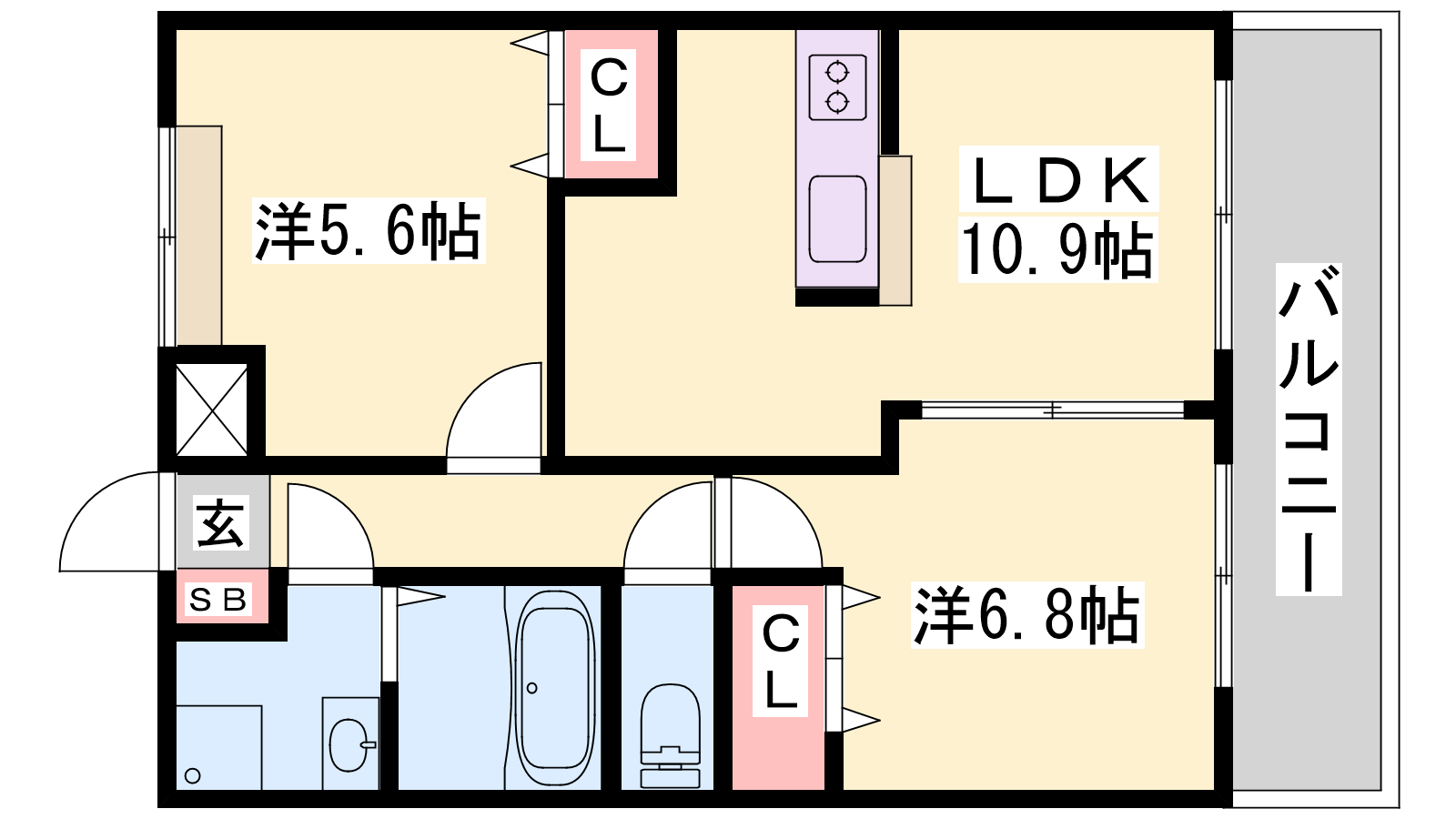 - LDK10.9帖、洋室6.8帖、洋室5.6帖