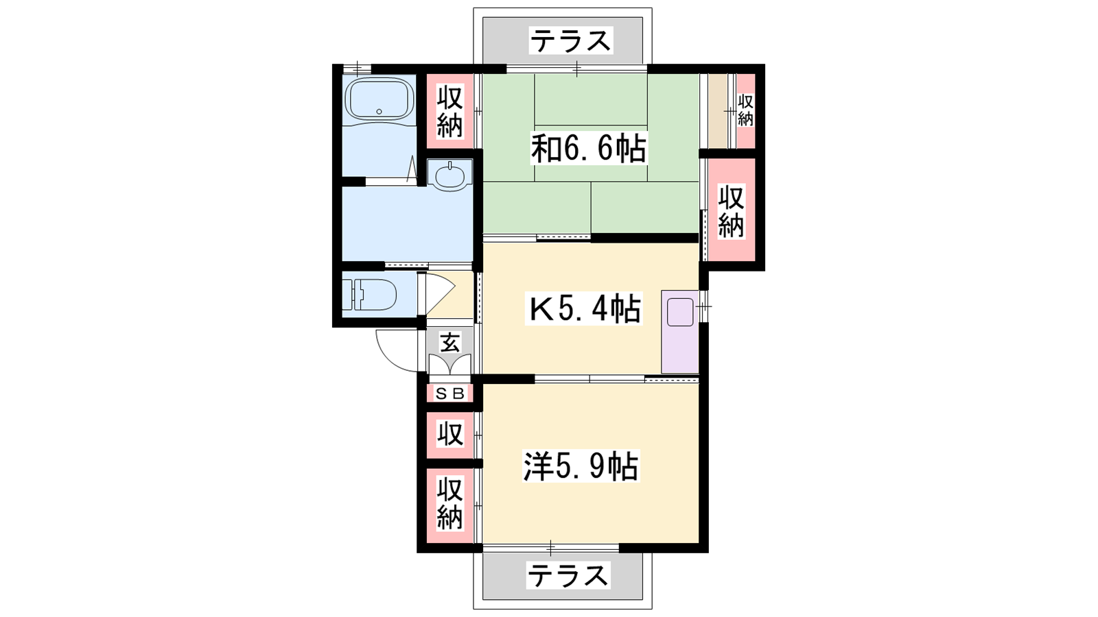 - K5.4帖、洋室5.9帖、和室6.6帖