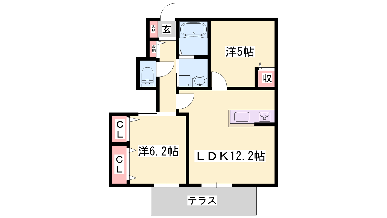 - LDK12.2帖、洋室6.2帖、洋室5帖