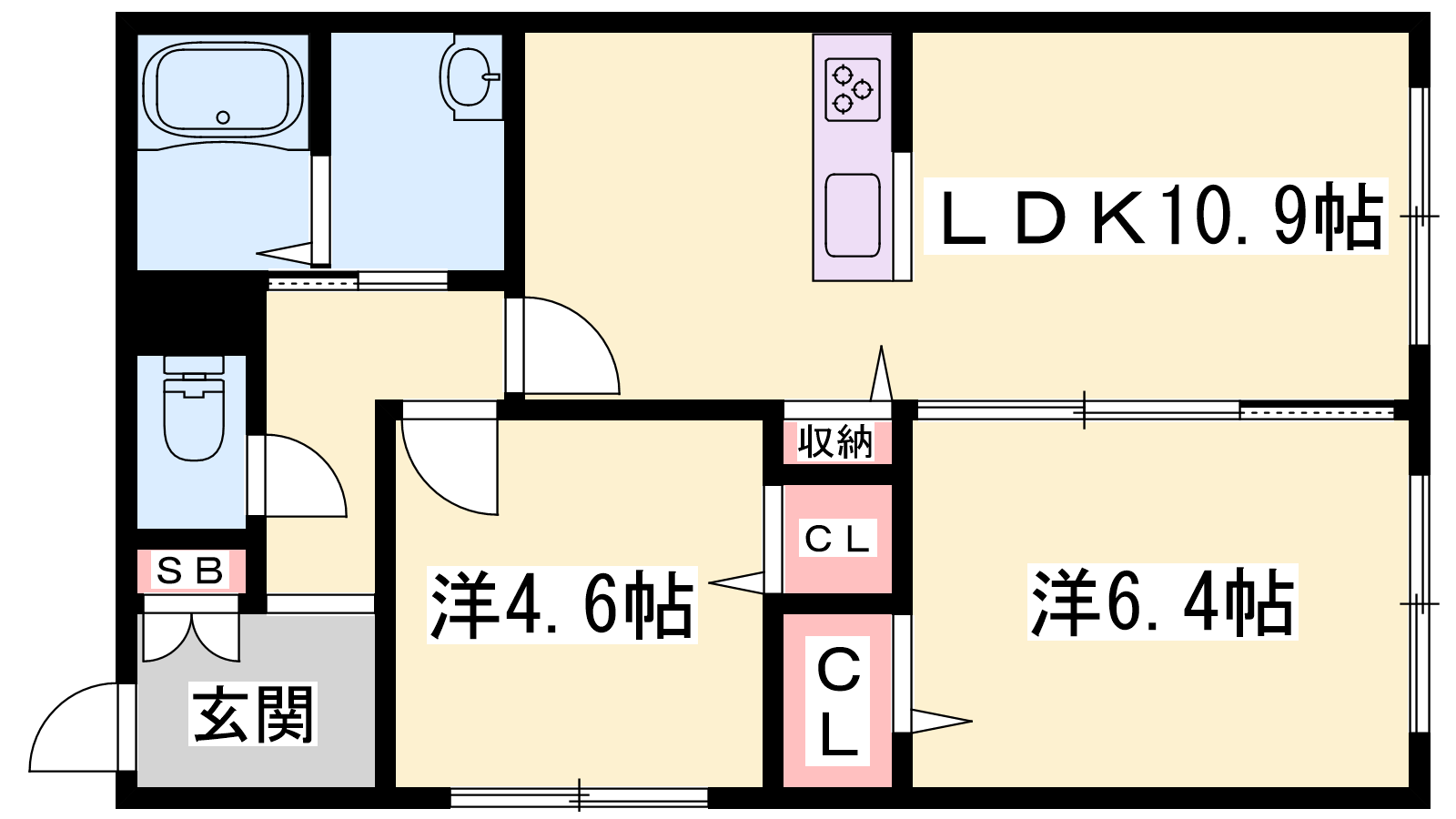 - LDK10.9帖、洋室6.4帖、洋室4.6帖