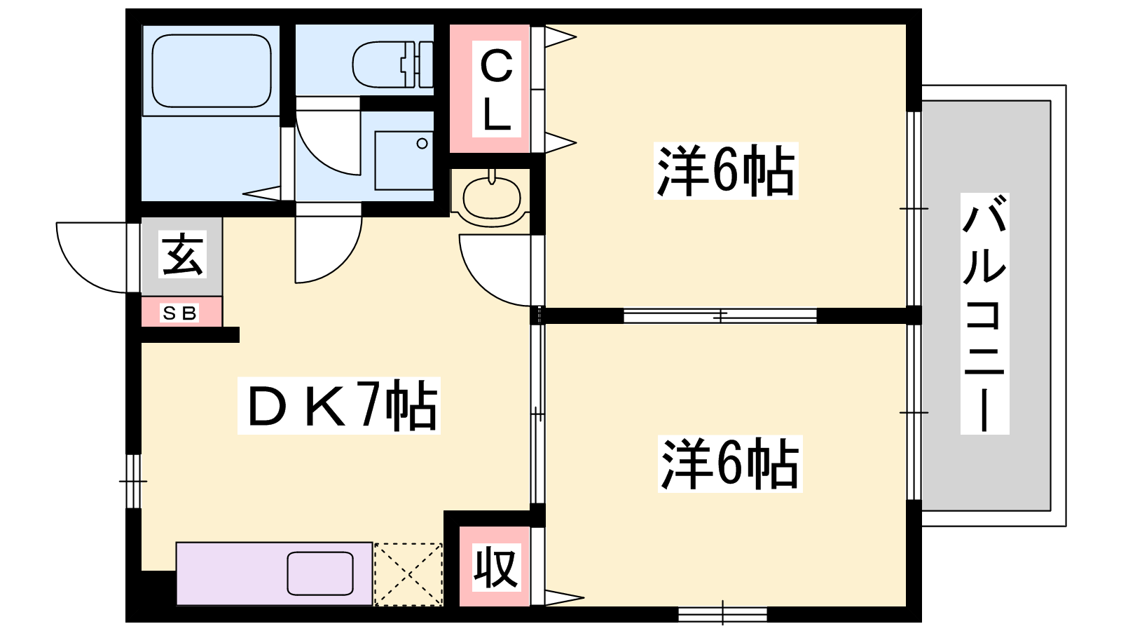 - DK7帖、洋室6帖、和室6帖