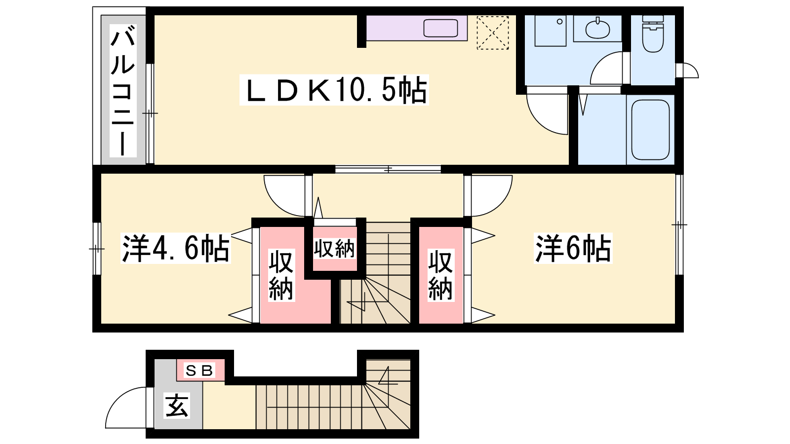 - LDK10.5帖、洋室6帖、洋室4.6帖