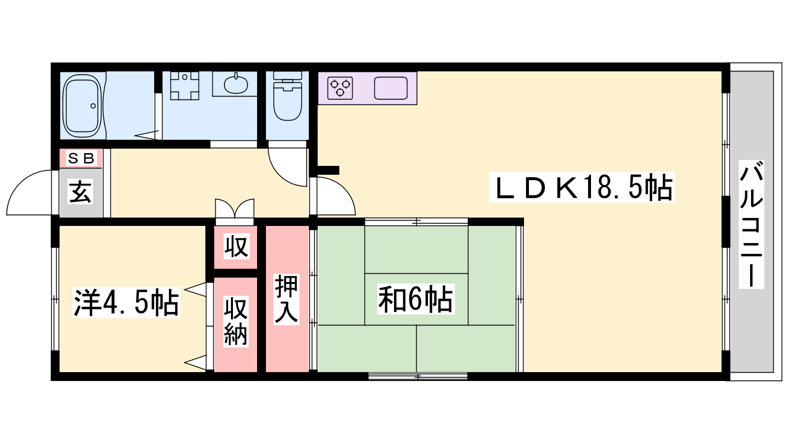 - LDK18.5帖、洋室4.5帖、和室6帖