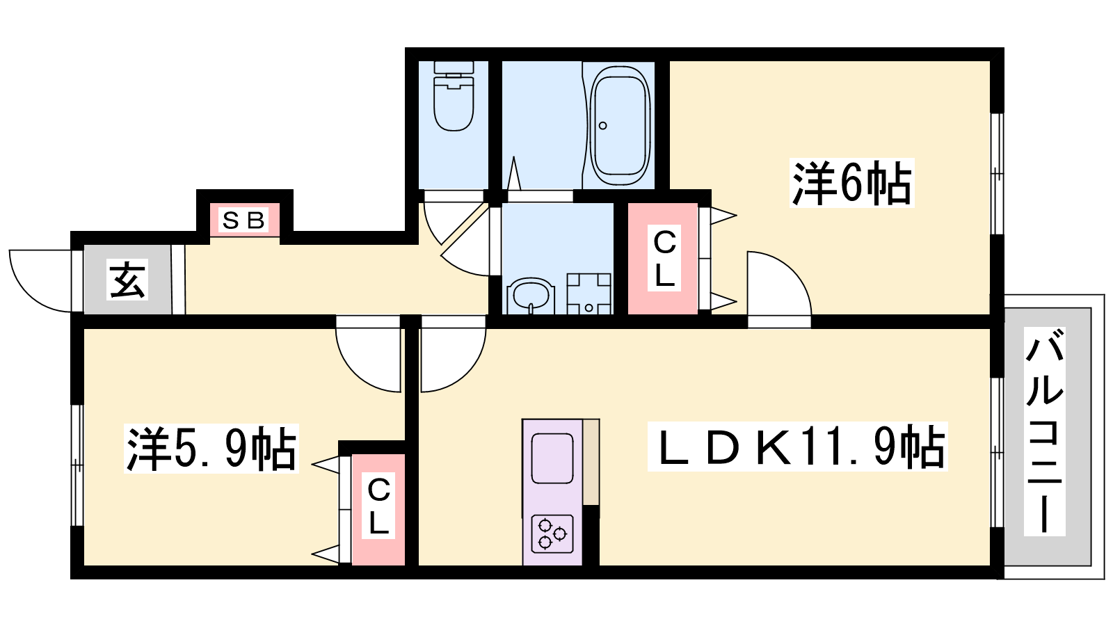 - LDK11.9帖、洋室6帖、洋室5.9帖
