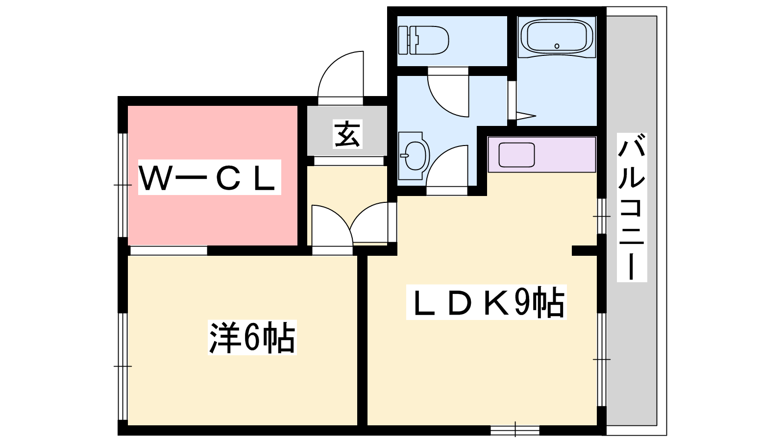 - LDK9帖、洋室6帖