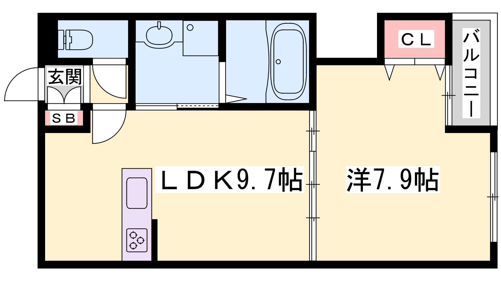 - LDK9.7帖、洋室7.9帖