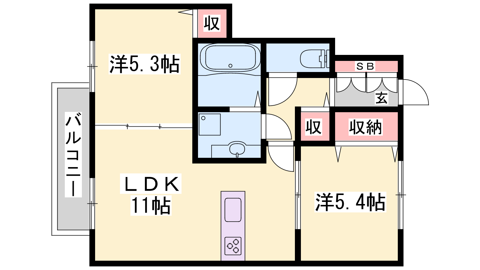- LDK11帖、洋室5.3帖、洋室5.3帖