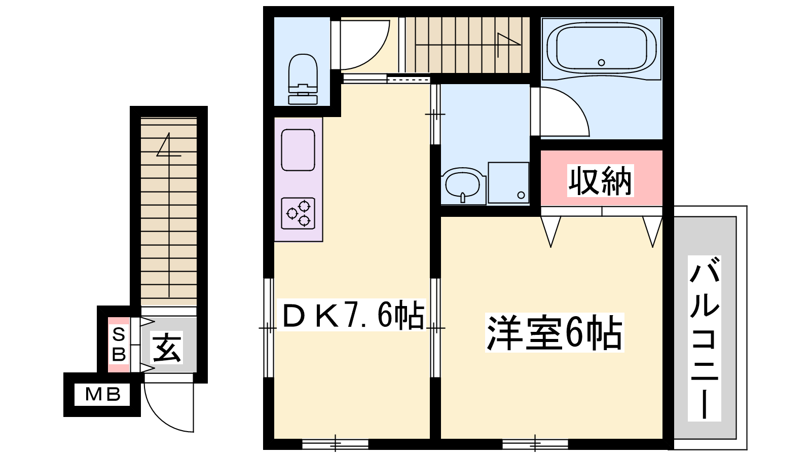 - DK7.6帖、洋室6帖
