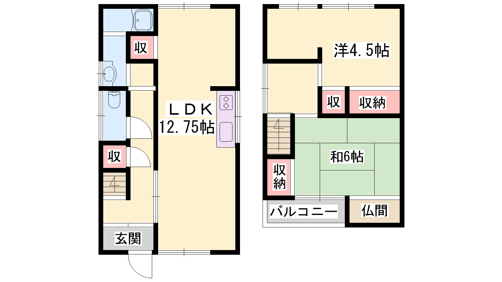 - LDK12.75帖、洋室4.5帖、和室6帖