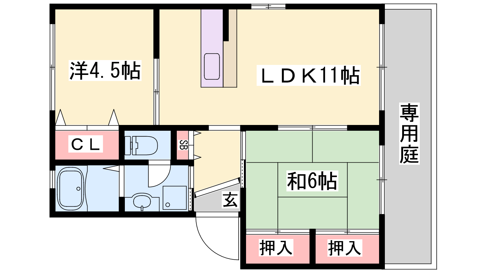 - LDK11帖、洋室4.5帖、和室6帖