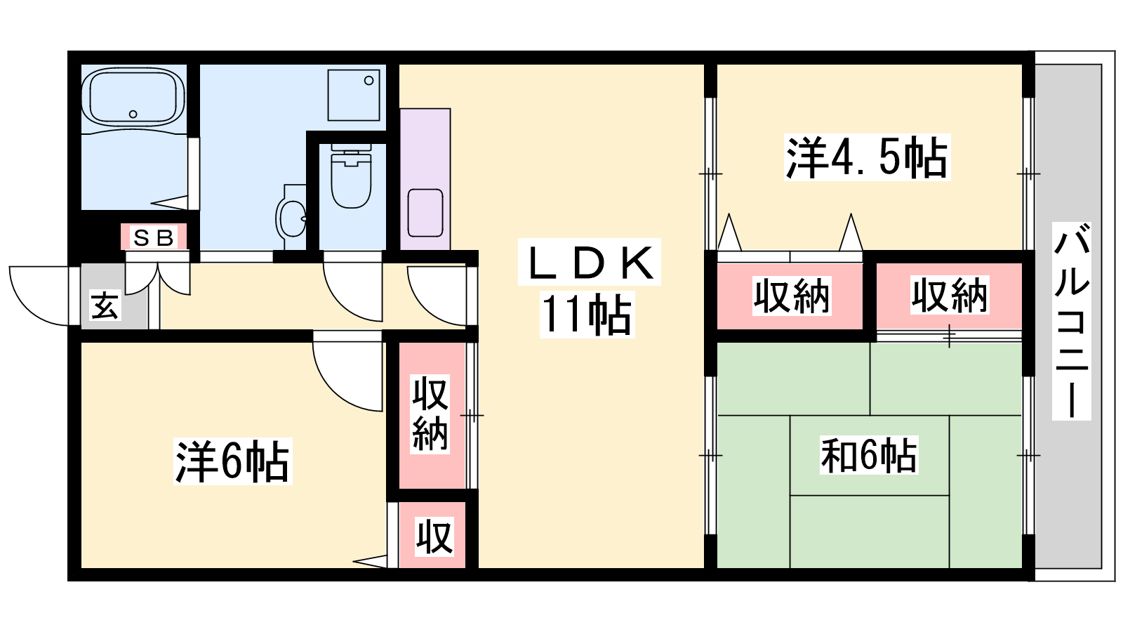 - LDK11帖、洋室6帖、洋室4.5帖、和室6帖