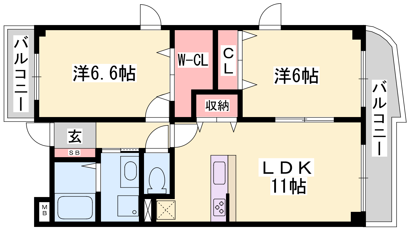 - LDK11帖、洋室6.6帖、和室6帖