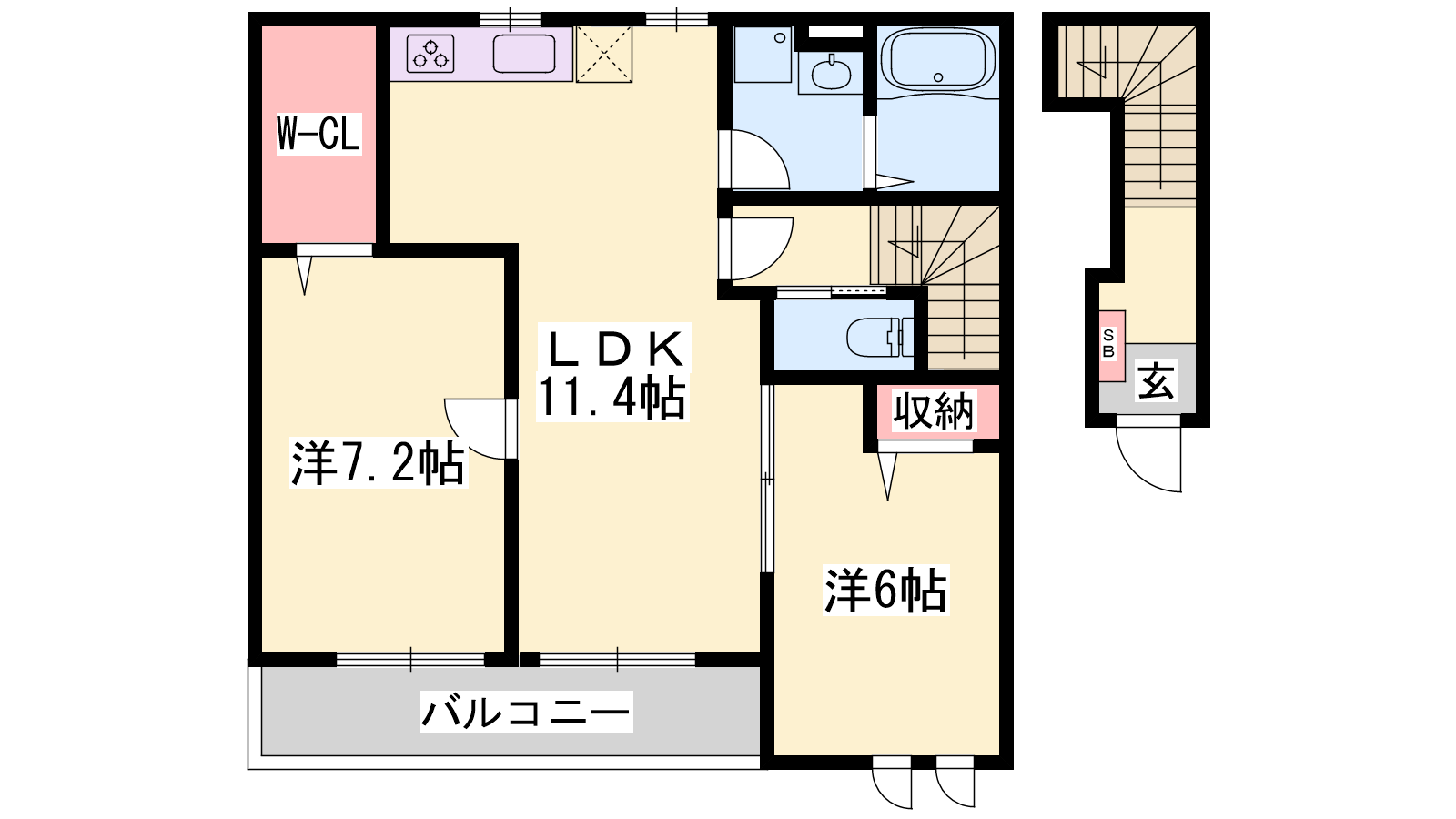 - LDK11.4帖、洋室7.2帖、洋室6帖