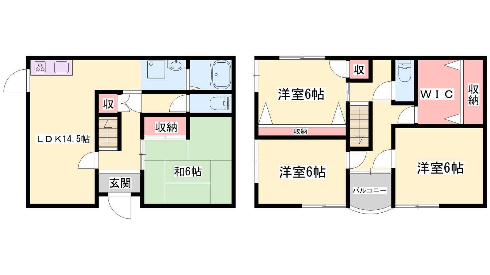- LDK14.5帖、洋室7帖、洋室6帖、洋室6帖、和室6帖、S3帖