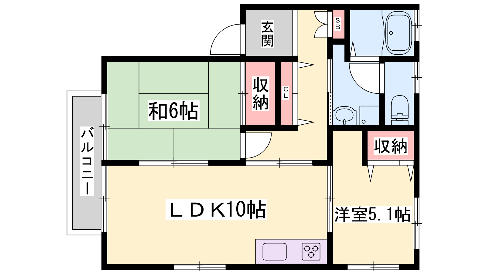 - LDK10帖、和室6帖、洋室5帖