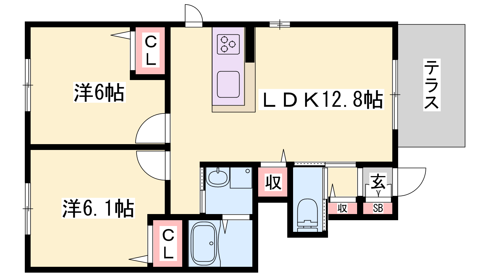 - LDK12.8帖、洋室6.1帖、洋室6帖