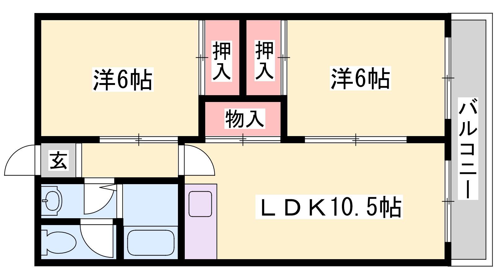 - LDK10.5帖、洋室6帖、洋室6帖