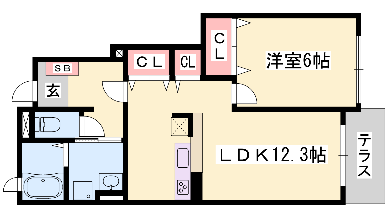 - LDK12.3帖、洋室6帖