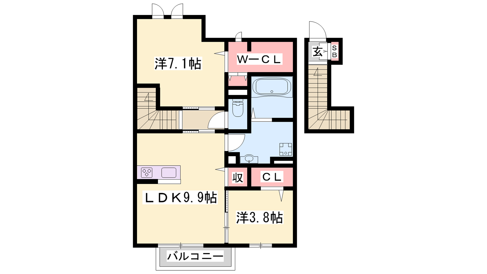- LDK9.9帖、洋室7.1帖、洋室3.8帖