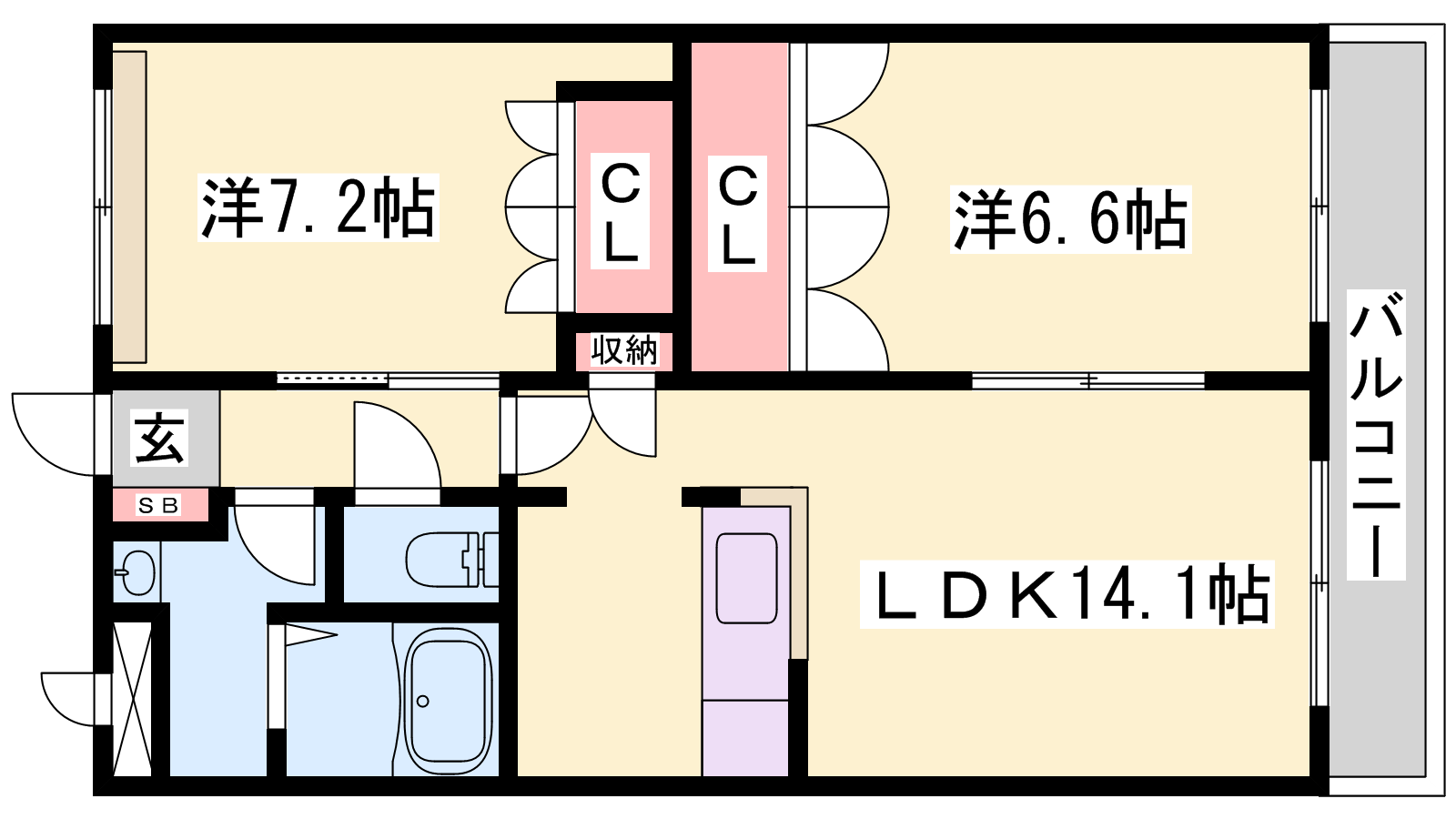 - LDK14.1帖、洋室7.2帖、洋室6.6帖