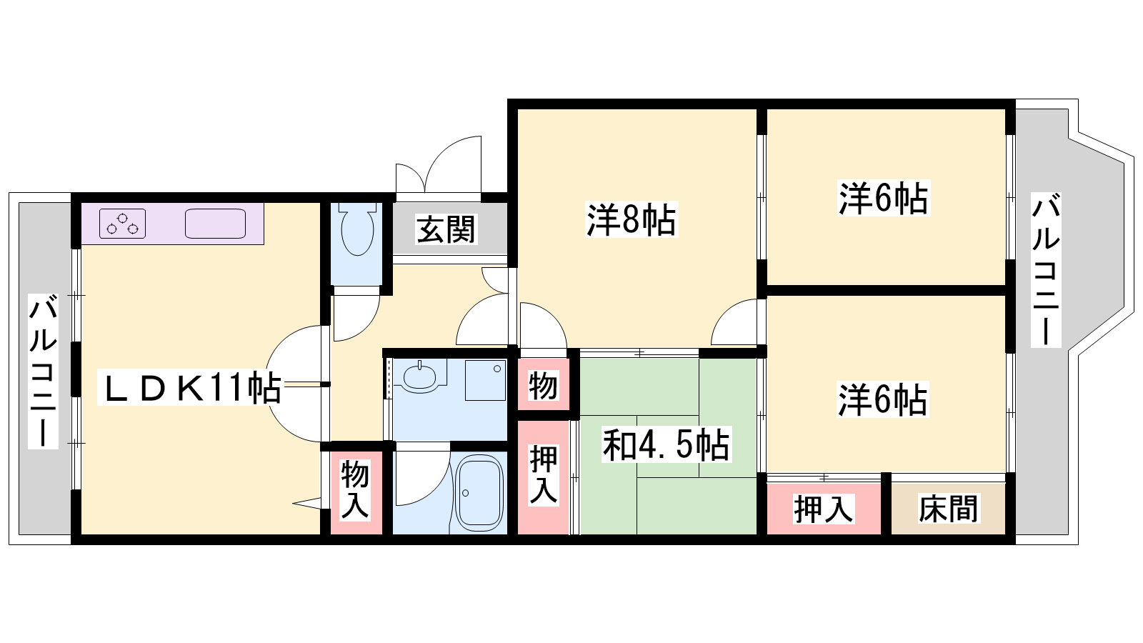 - LDK11帖、洋室8帖、洋室6帖、洋室6帖、和室4.5帖