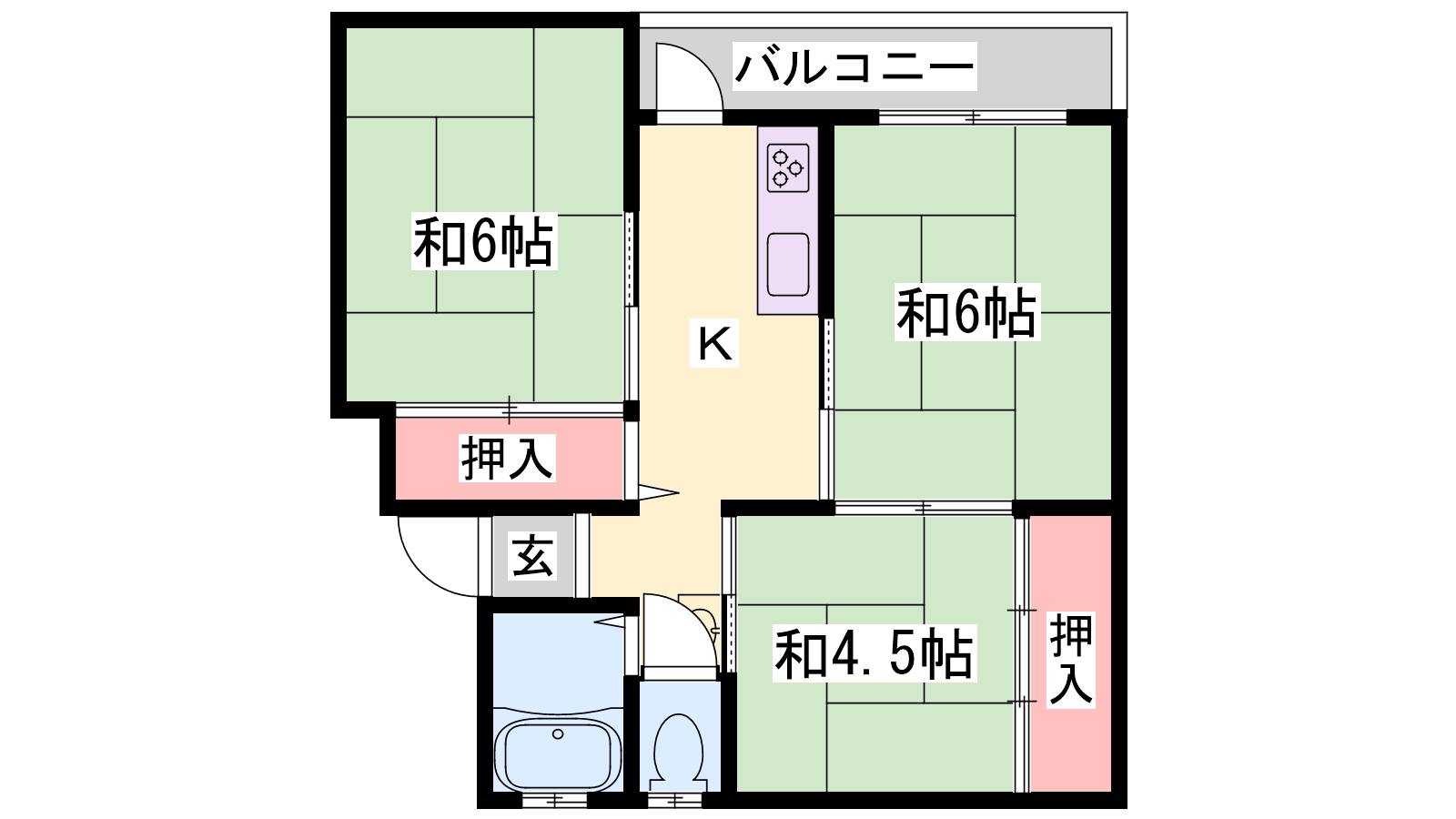 - K6帖、和室6帖、和室6帖、和室4.5帖