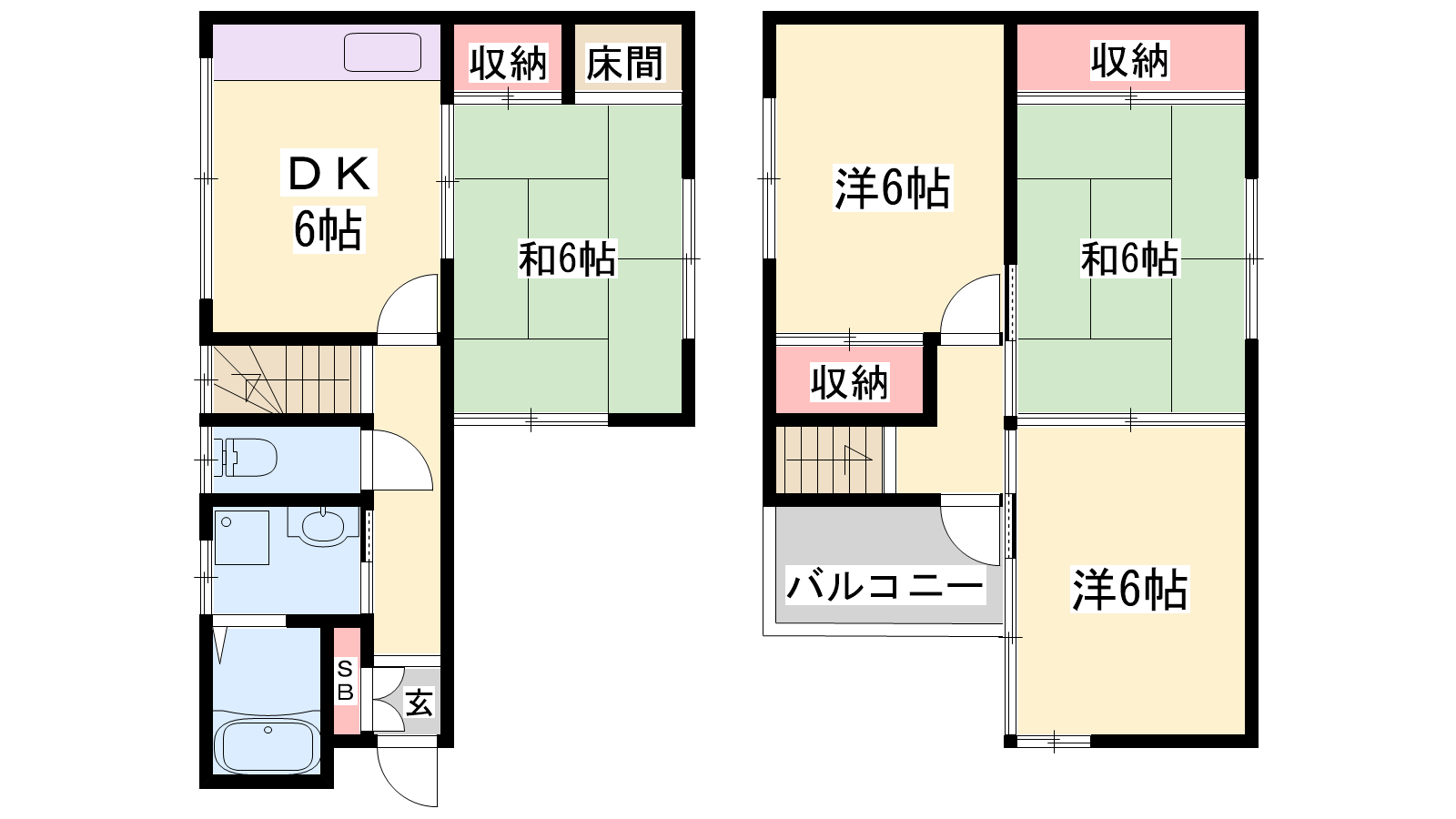 - DK6帖、洋室6帖、洋室6帖、洋室6帖、和室6帖