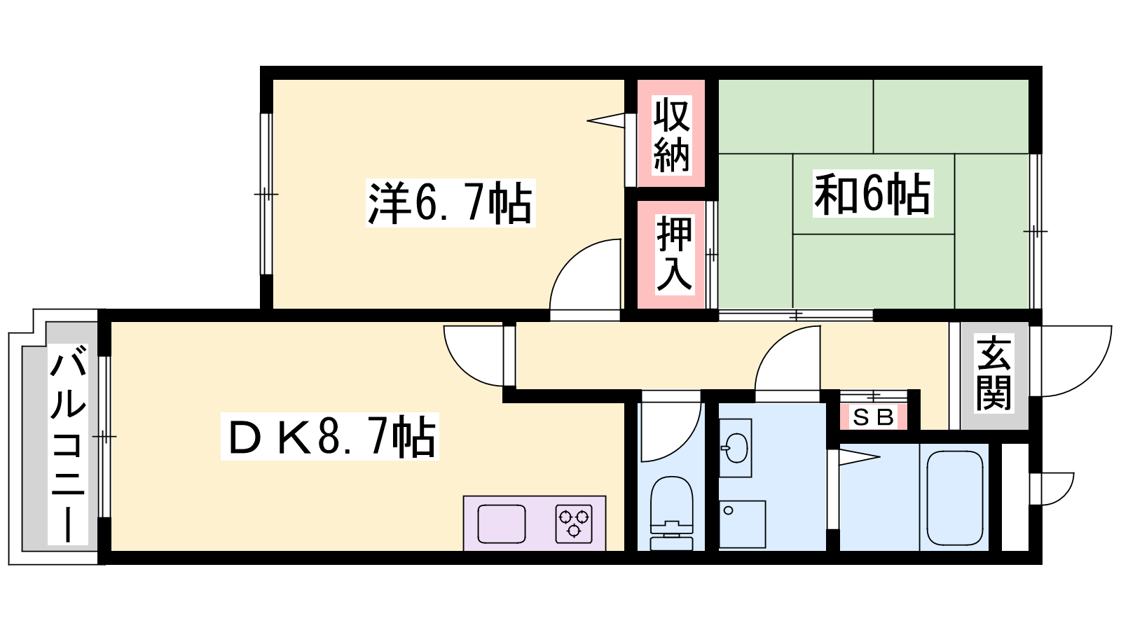 - LDK8.7帖、洋室6.7帖、和室6帖