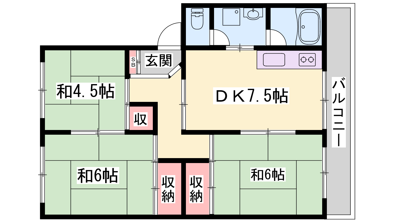 - DK7.5帖、洋室6帖、和室6帖、和室4.5帖