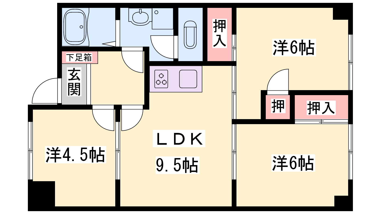 - LDK9.5帖、洋室6帖、洋室6帖、洋室4.5帖