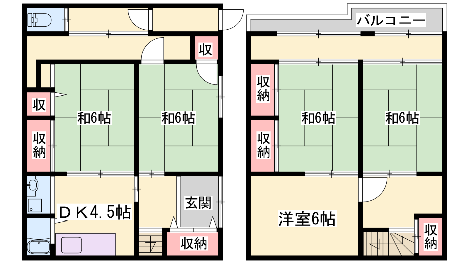 - DK4.5帖、洋室6帖、和室6帖、和室6帖、和室6帖、和室6帖