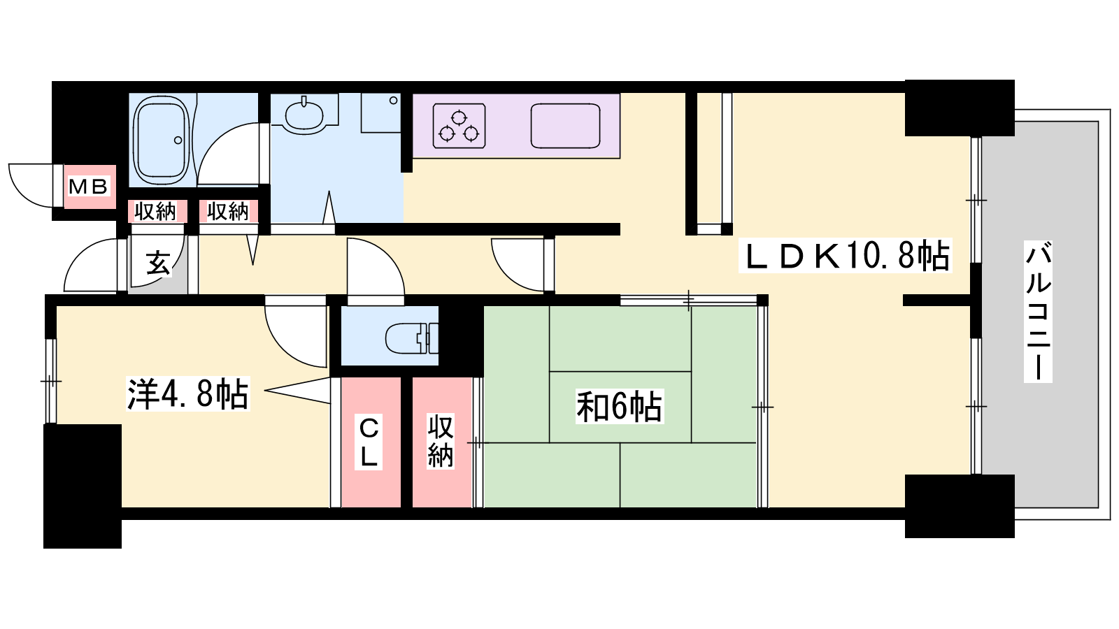 - LDK10.8帖、洋室4.8帖、和室6帖