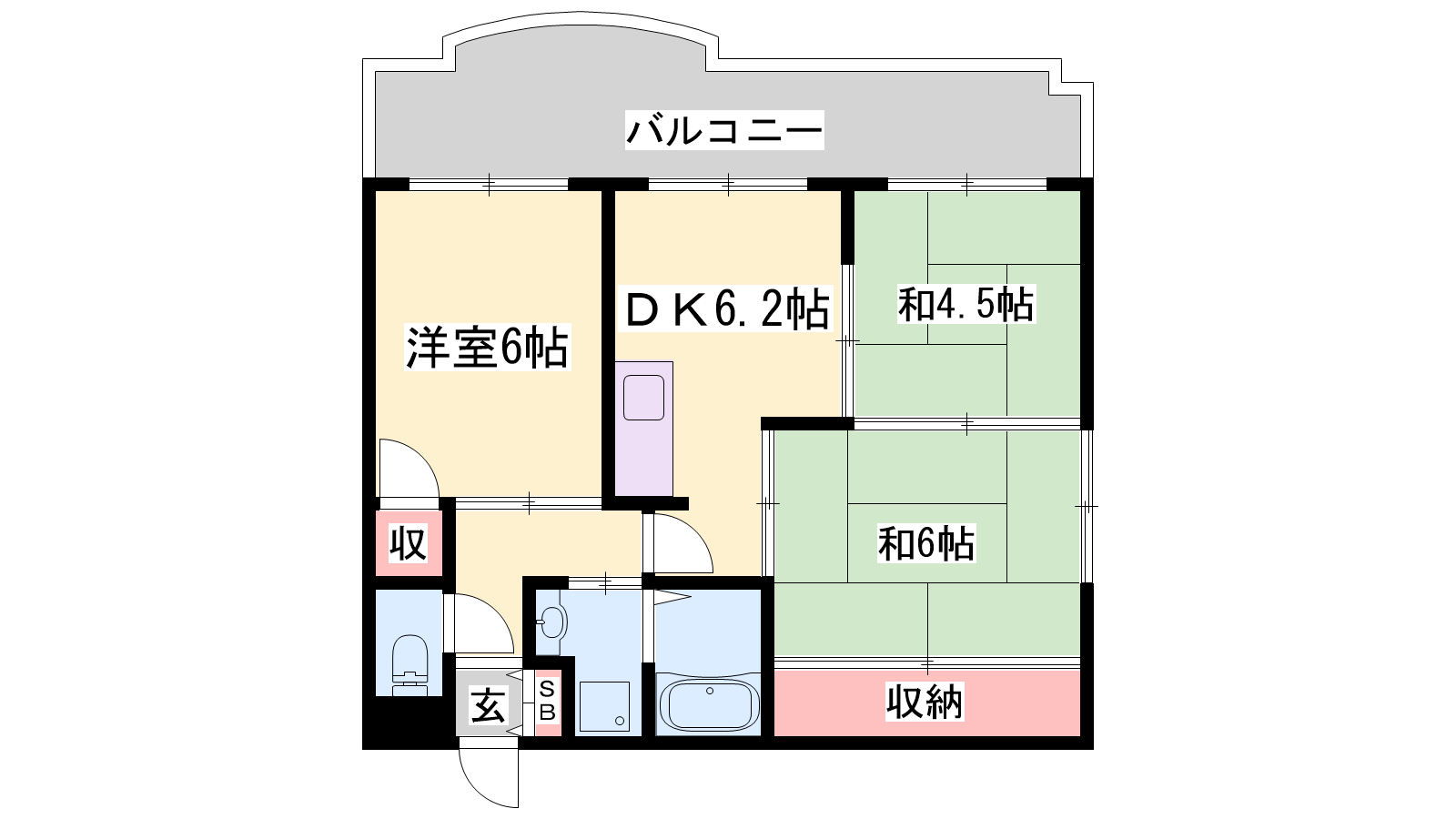 - DK6.2帖、洋室6帖、洋室5.2帖、和室6帖