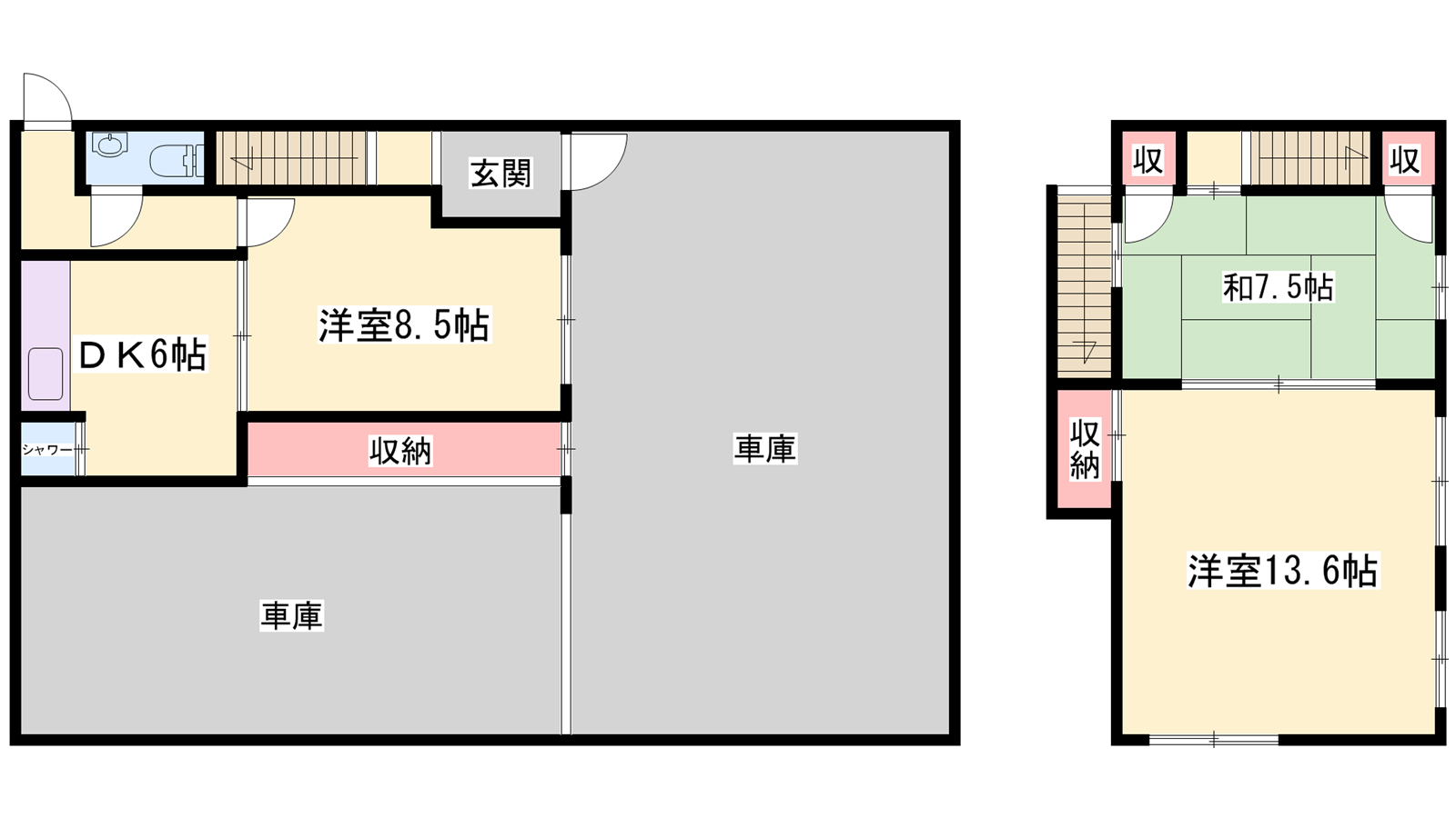 - DK5帖、洋室13.6帖、洋室8.5帖、和室7.5帖