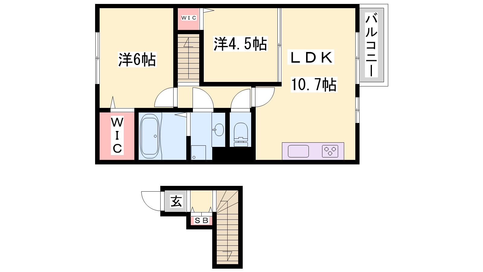 - LDK10.6帖、洋室6帖、洋室4.5帖