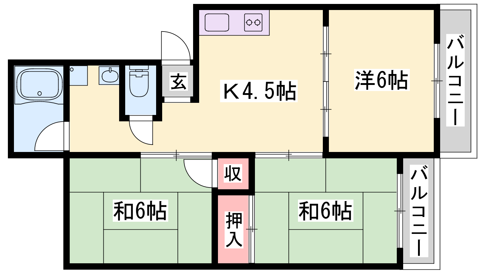 - DK4.5帖、洋室6帖、和室6帖、和室6帖