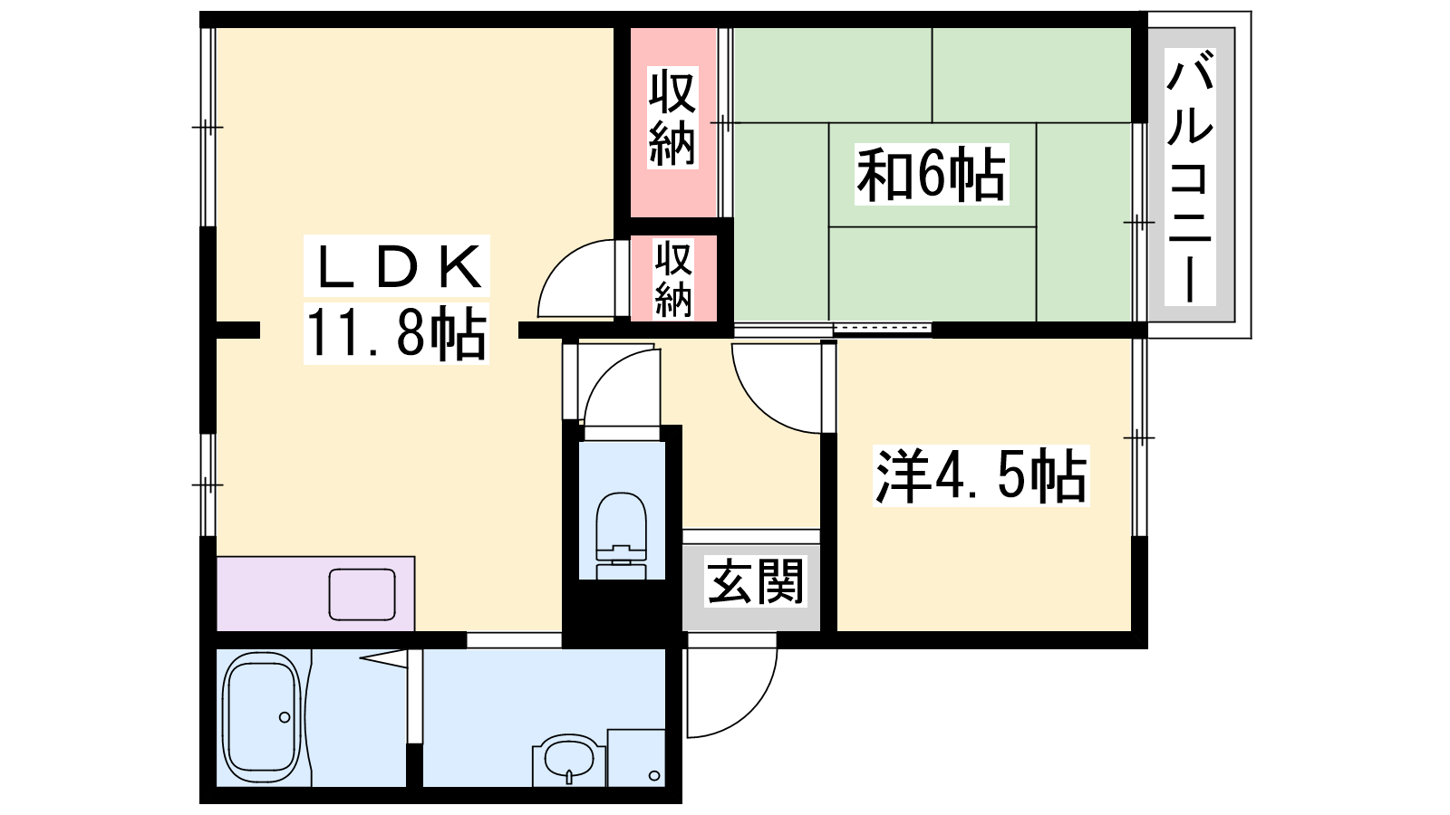 - LDK11.5帖、洋室4.5帖、和室6帖