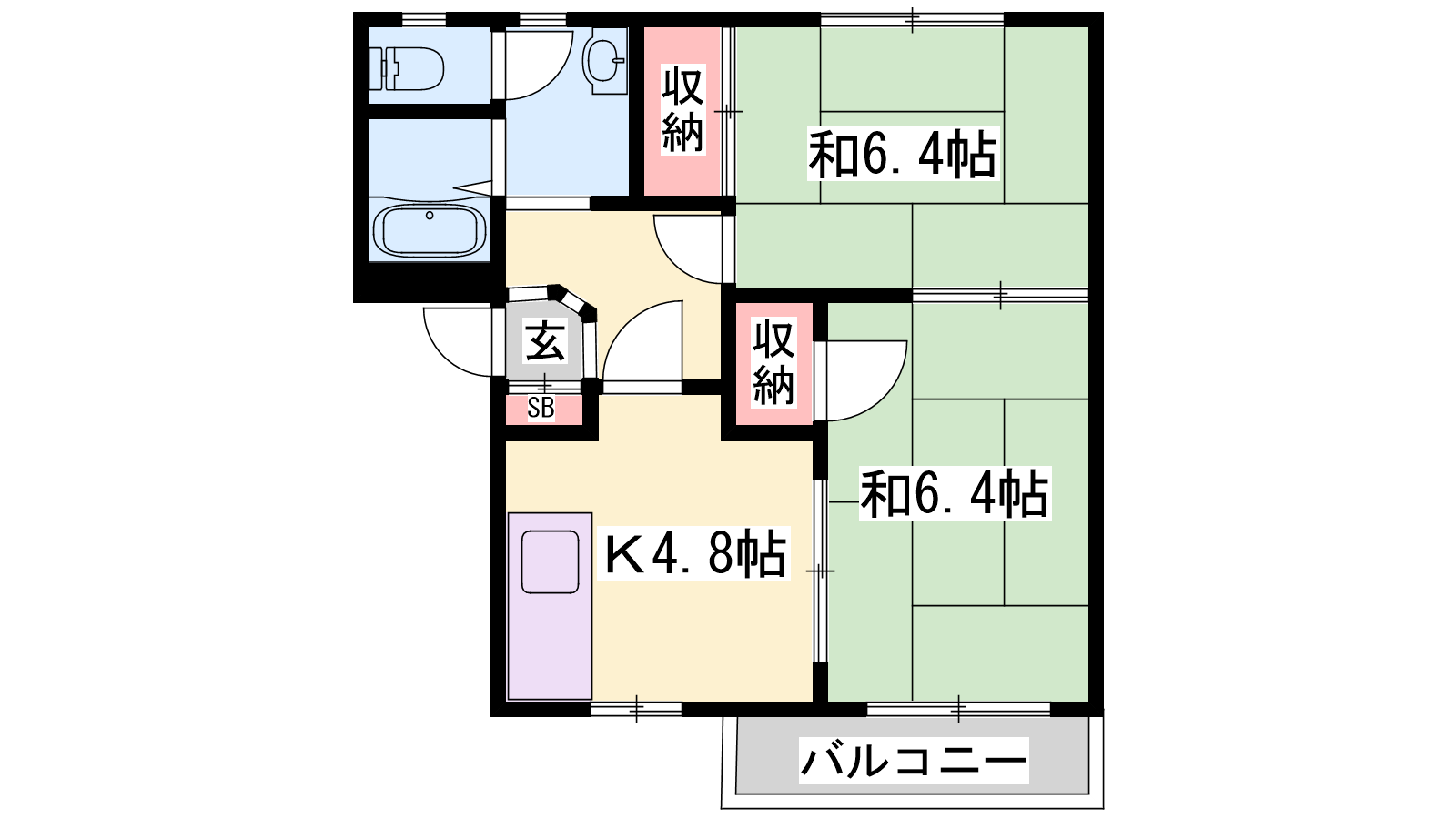 - K4.8帖、和室6.4帖、和室6.4帖