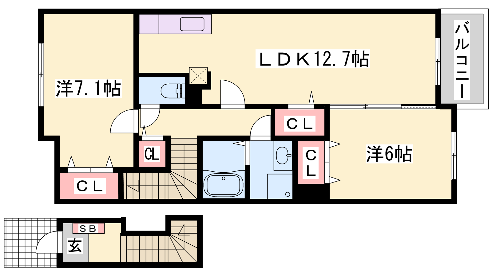 - LDK12.7帖、洋室7.1帖、洋室6帖