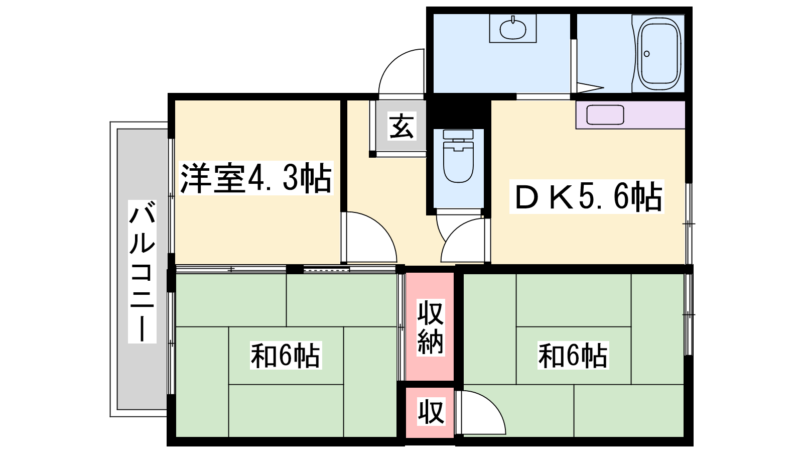- DK5.6帖、洋室4.3帖、和室6帖、和室6帖