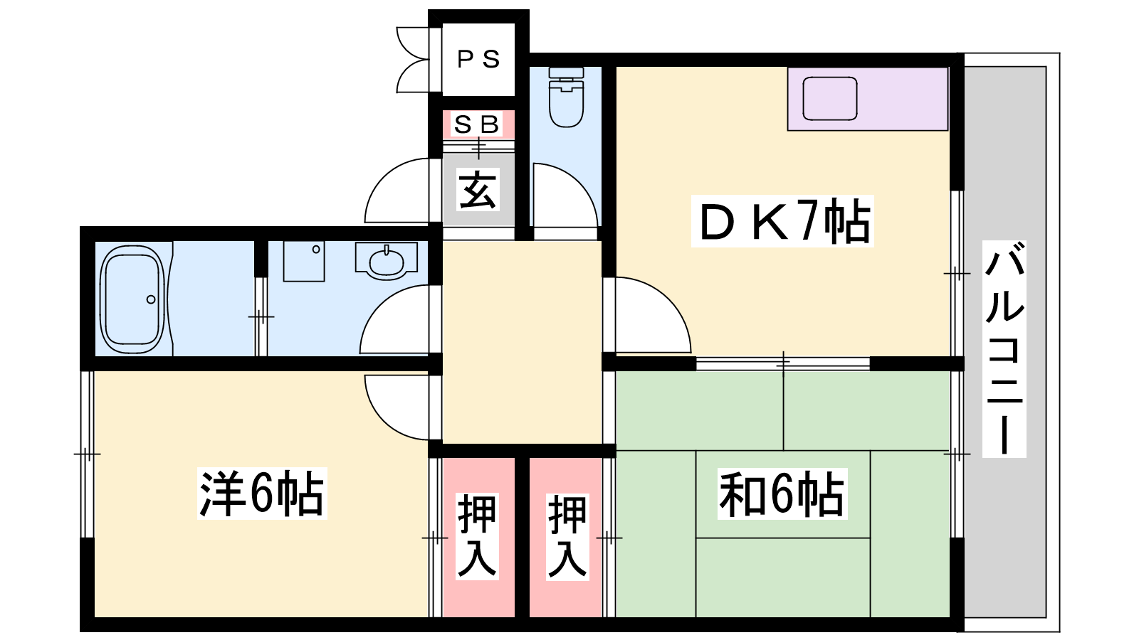 - DK7帖、洋室6帖、和室6帖