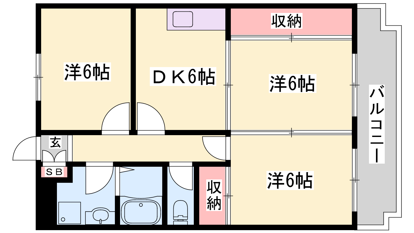 - DK6帖、洋室6帖、洋室6帖、洋室6帖