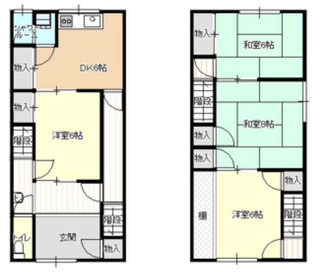 - DK6帖、洋室6帖、洋室6帖、和室8帖、和室6帖