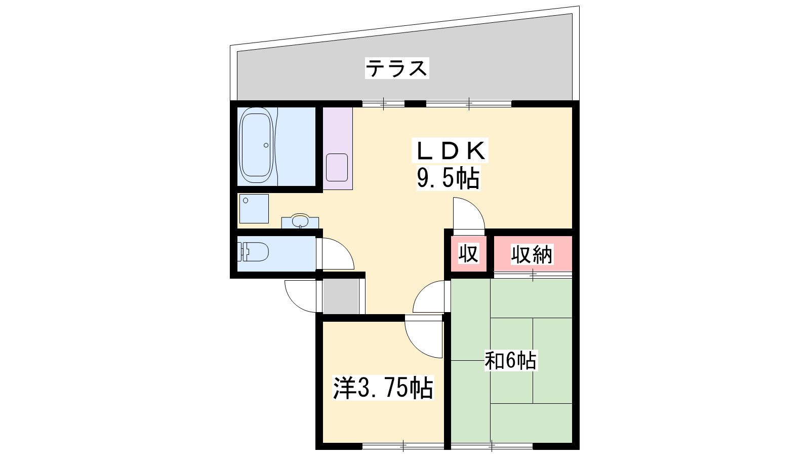 - LDK9.5帖、洋室3.75帖、和室6帖