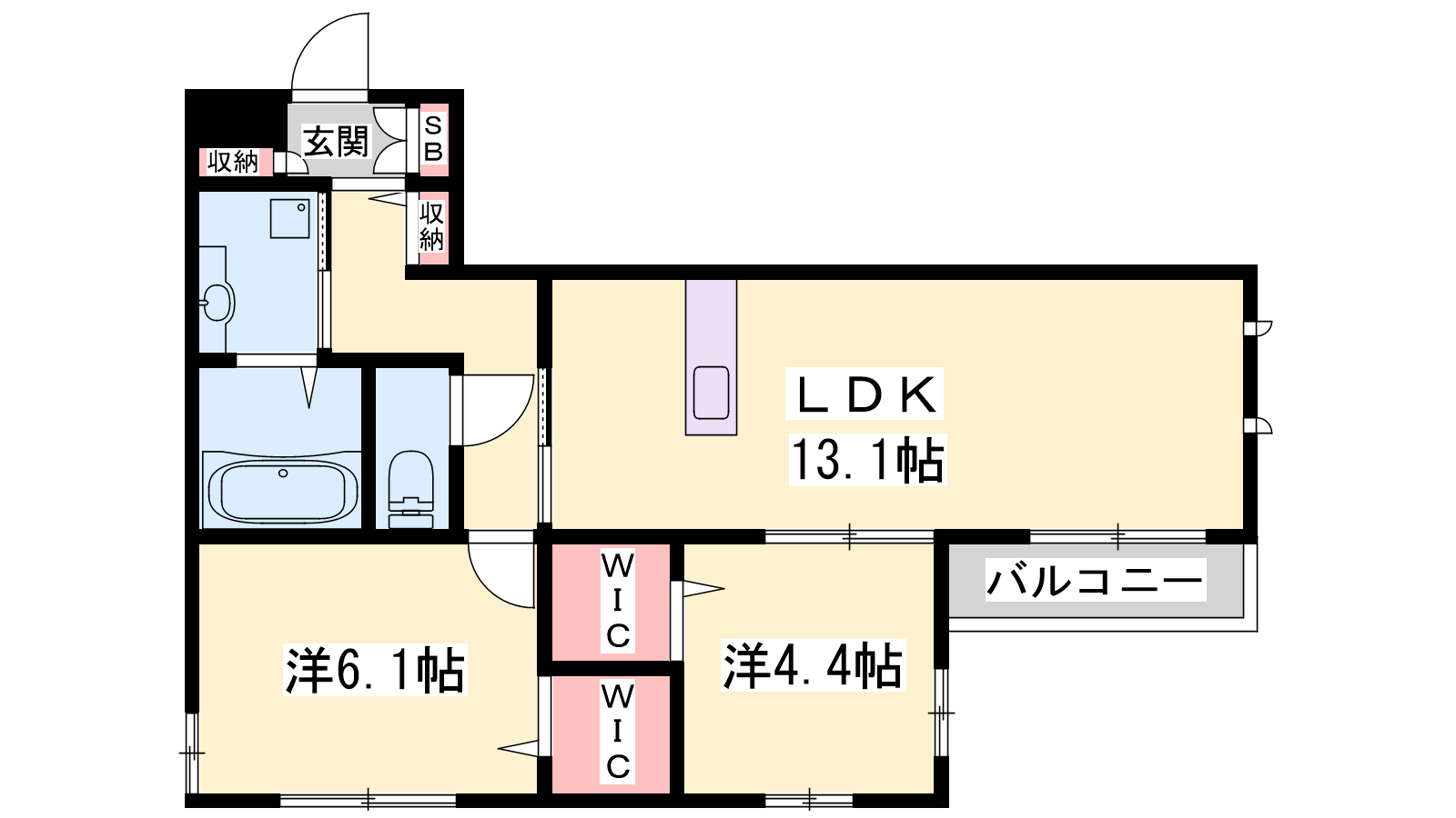 - LDK13.1帖、洋室6.1帖、洋室4.4帖