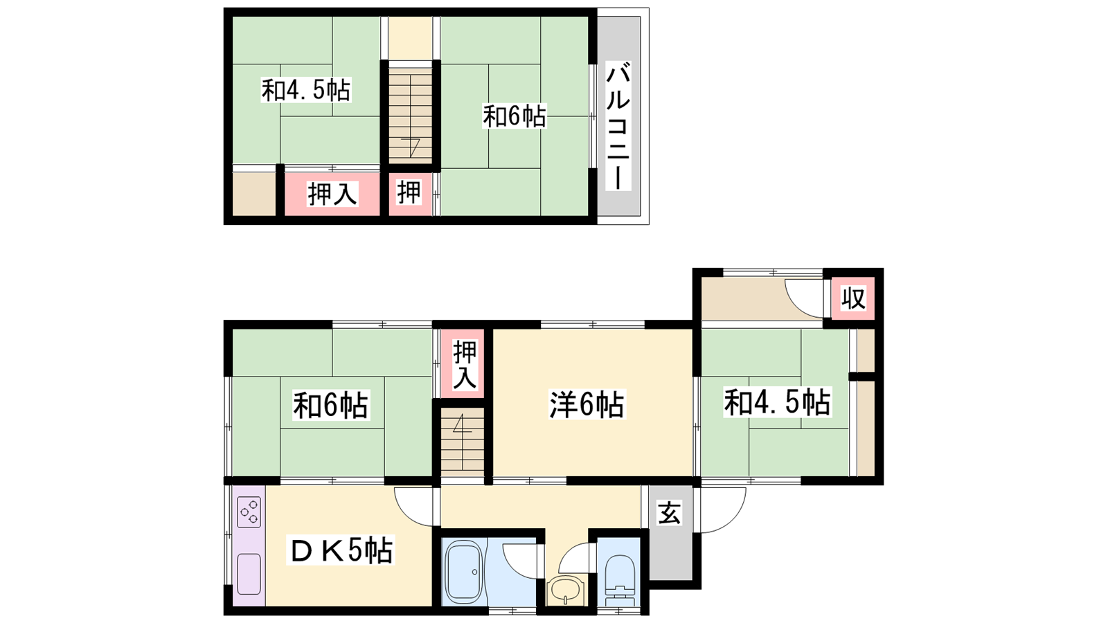 - DK5帖、洋室6帖、和室6帖、和室6帖、和室4.5帖、和室4.5帖